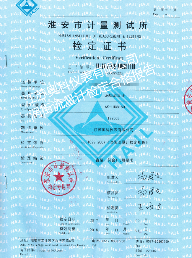 壓縮空氣專用流量計(jì)產(chǎn)品檢驗(yàn)合格報告: