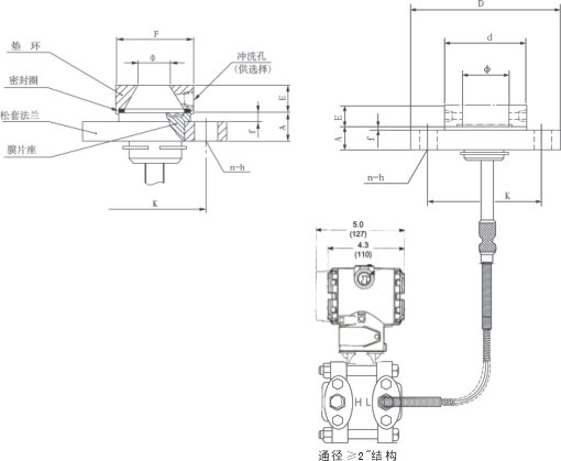 AK-3051GP遠傳壓力變送器是一種通過安裝在管道或容器上的遠傳裝置來感受被測壓力,該壓力經(jīng)毛細管內(nèi)的灌充硅油(或其它的液體)傳遞至變送器的主體,然后由變送器主體內(nèi)的δ室和放大線路板,將壓力或差壓轉(zhuǎn)換4~20mA.DC信號輸出(參見結(jié)構(gòu)原理圖)。 |