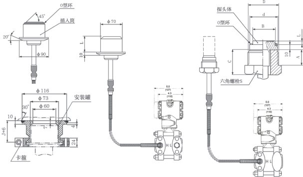 AK-3051GP單法蘭液位變送器是一種通過安裝在管道或容器上的遠(yuǎn)傳裝置來感受被測壓力,該壓力經(jīng)毛細(xì)管內(nèi)的灌充硅油(或其它的液體)傳遞至變送器的主體,然后由變送器主體內(nèi)的δ室和放大線路板,將壓力或差壓轉(zhuǎn)換4~20mA.DC信號輸出(參見結(jié)構(gòu)原理圖)。 |